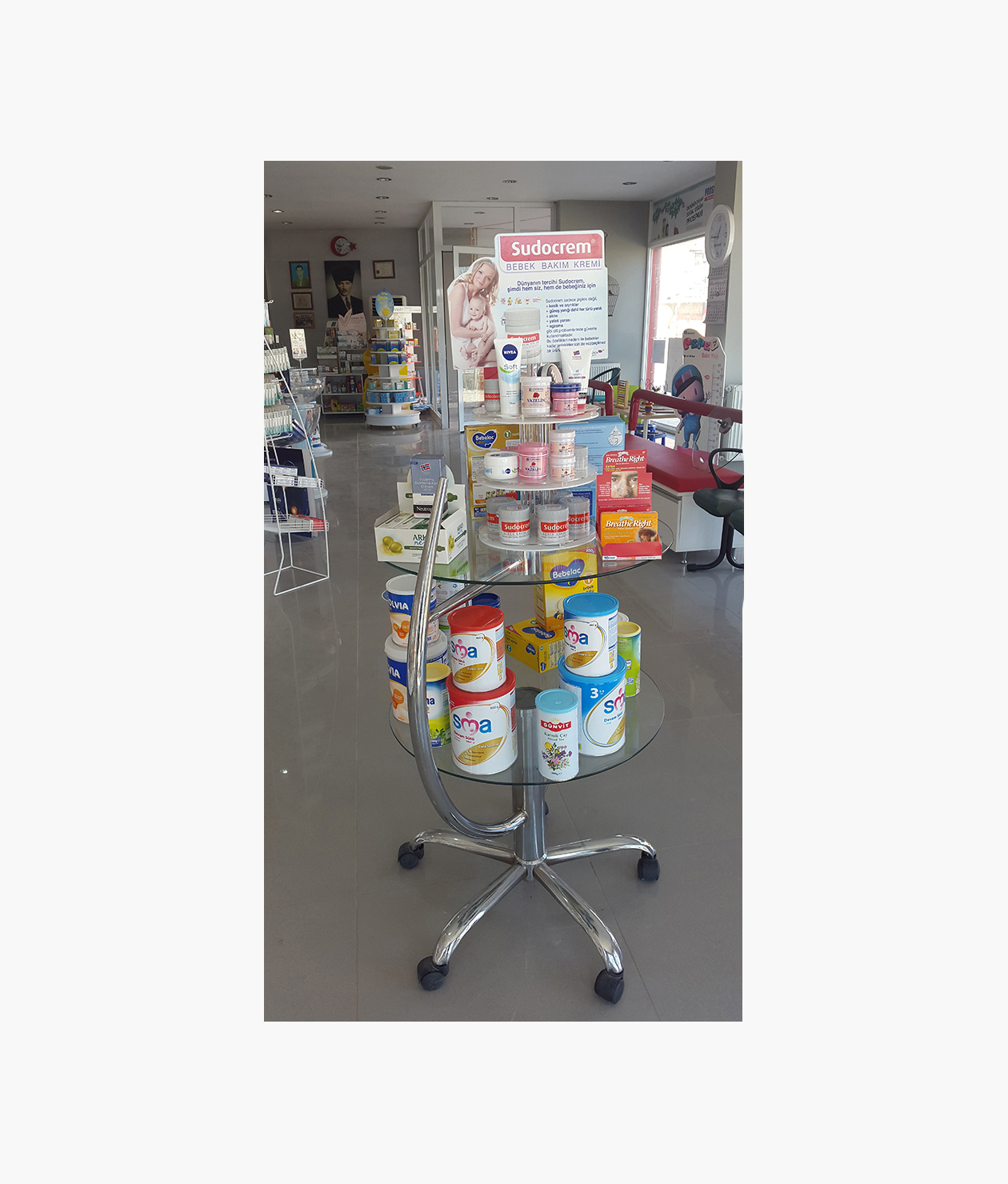 -Kırılmaya ileri derece dayanıklı temperlenmiş camdan, kendi ekseni etrafında 360 derece dönme özelliği olan 2 adet servis yüzeyine sahip,